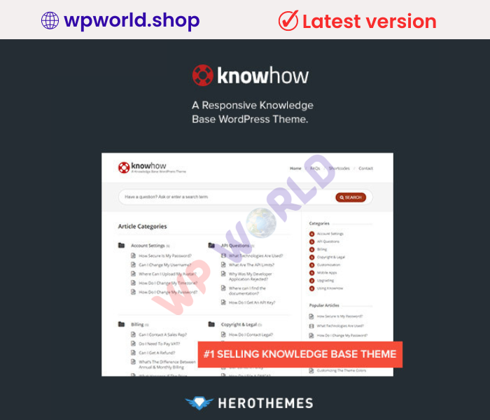 KnowHow ? A Knowledge Base WordPress Theme: KnowHow is a clean and practical WordPress theme designed for creating knowledge bases, FAQs, and online documentation sites. With its straightforward design and user-friendly features, KnowHow provides a perfect platform to organize and share information with your audience. The theme includes customizable layouts for displaying articles, categorizing content, and featuring popular topics. It also supports integration with search and helpdesk plugins, enhancing your site’s functionality and user experience. KnowHow’s responsive design ensures that your website looks great on all devices, while its intuitive customization options allow you to create a unique and highly functional knowledge base that meets the needs of your users.